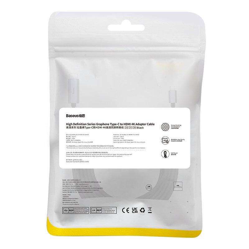 Introducing the Baseus High Definition Series Type-C to HDMI adapter cable – the perfect solution for seamless connectivity between your USB Type-C enabled devices and HDMI 2.0 4K @ 60Hz monitors. Designed with practicality and versatility in mind, this 3-meter black adapter cable ensures a convenient link between your computer or smartphone and a 4K monitor or projector.