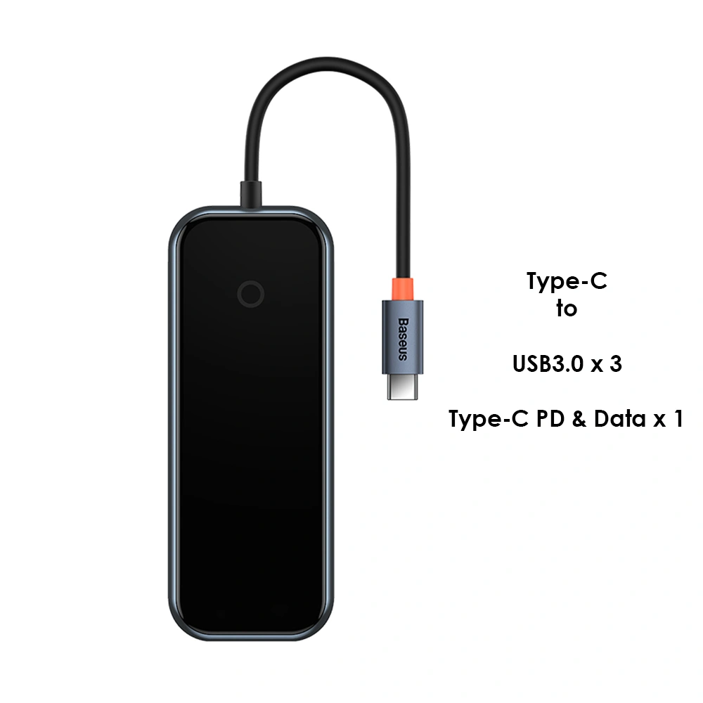 Baseus AcmeJoy 4-Port Type-C HUB Adapter – Dark Gray (Type-C to USB3.0*3 + Type-C PD & Data *1) – WKJZ010013
