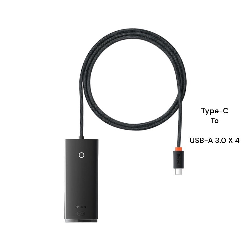 Baseus Lite / Air Joy – 4-Port Type-C HUB Adapter (Type-C to USB 3.0*4 ) 1m Black – Black-WKQX030401
