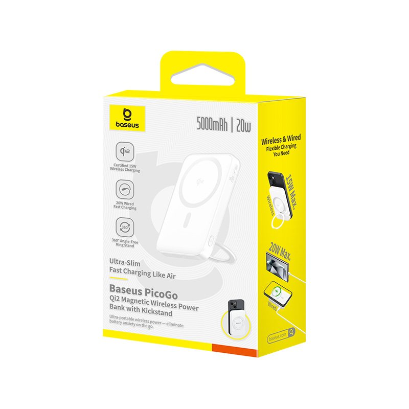Baseus 5000mah 20W PicoGo Qi2 Magnetic Power Bank with Rotatable Stand