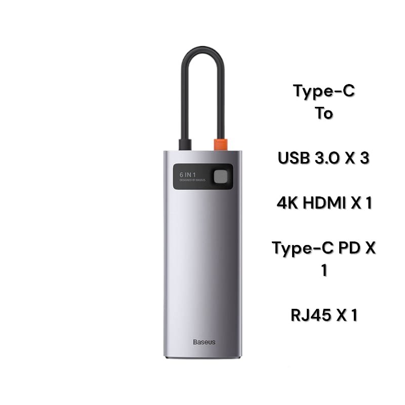Baseus Star Joy Series 6-in-1 Type-C HUB Multifunctional Docking Station Gray (Type C to USB 3.0*3 / HDMI*1 / RJ45 Network 1000MBPS*1 / Type C PD*1) – CAHUB-CW0G