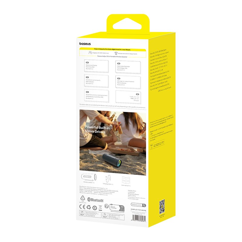 OS-Baseus AeQur 30 Air Portable Wireless Bluetooth Speaker is the perfect combination of modern design, high-quality sound and convenient features. This is the ideal choice for those who want to bring music everywhere and enjoy the most complete musical moments, whether at home, office or on the go.