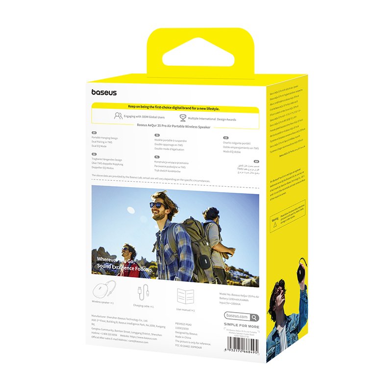 Elevate your listening experience with the Baseus AeQur 35 Pro Air Portable Wireless Speaker. Designed to deliver rich, immersive sound, this compact speaker packs powerful audio performance in a sleek, portable form. The Cluster Black finish gives it a modern, stylish look, perfect for both indoor and outdoor settings.