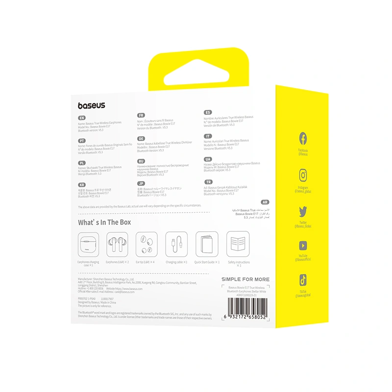 Sleek and stylish in stellar white, the Baseus Bowie E17 earphones fit easily into your pocket, backpack, or purse, making them your perfect everyday companion.