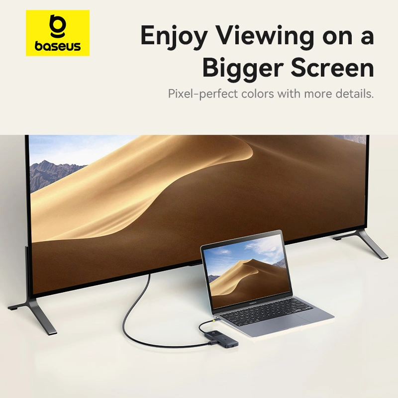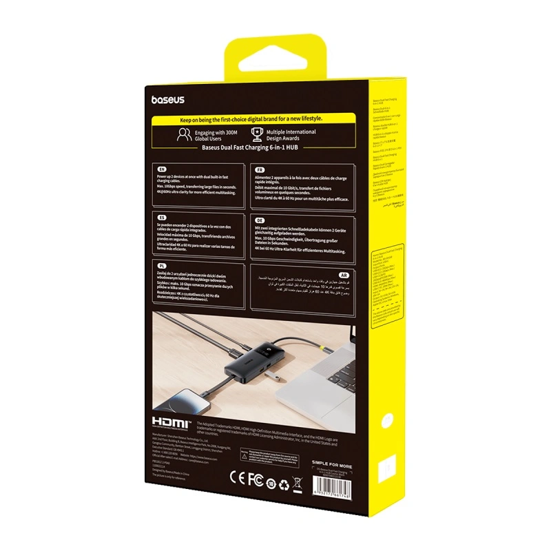 Upgrade your workstation with the Baseus Dual Fast Charging 6-in-1 HUB and enjoy seamless productivity, stunning visuals, and efficient power delivery — all in one compact device.