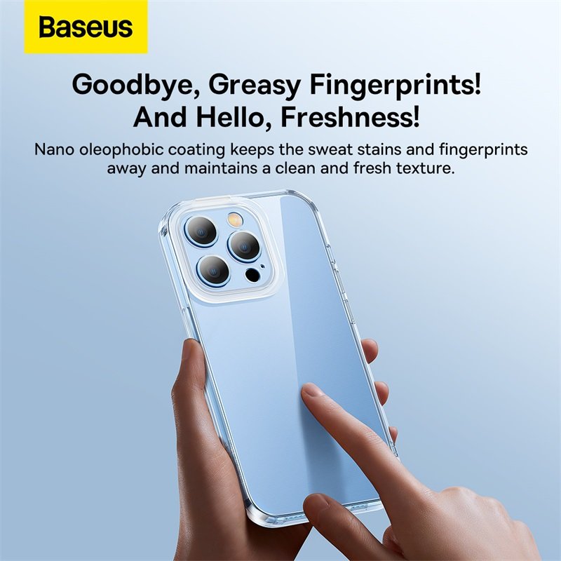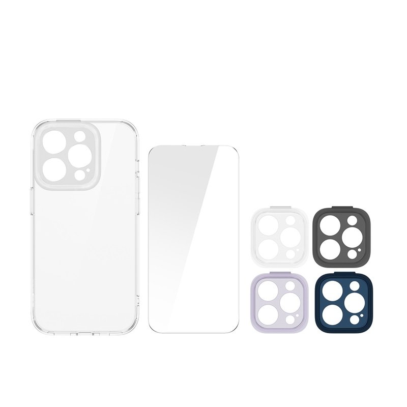 Baseus Illusion Series iP 14 Pro Protective Case for (With clear/Black/Blue/Purple Camera Lens Frames and Full Coverage Tempered Glass Screen Protector and Cleaning kit)-ARHJ000102