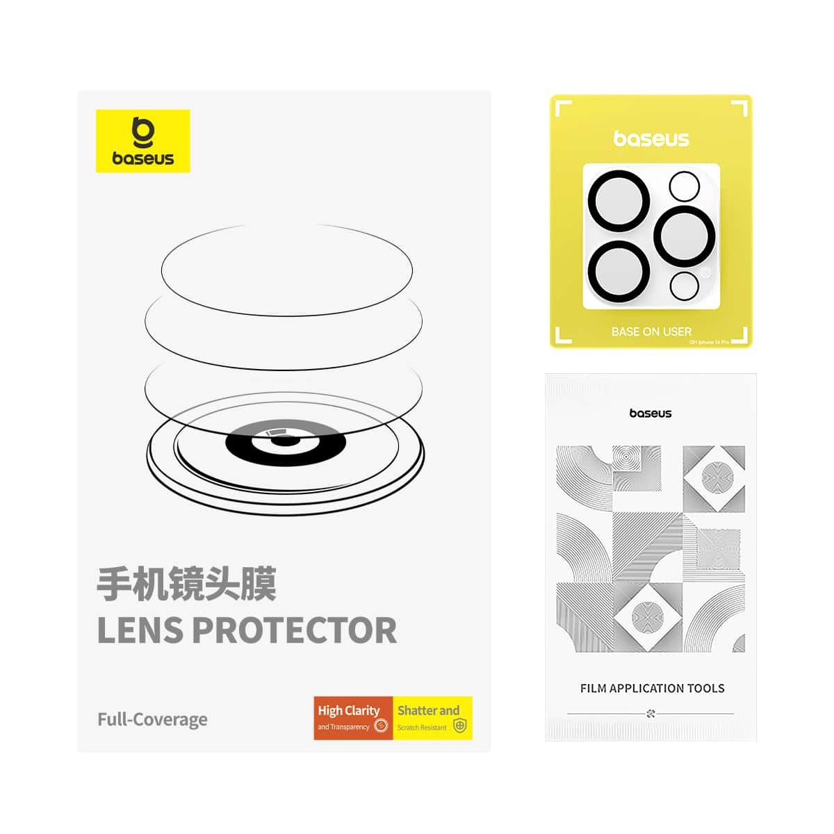 Baseus 15 Pro/15 Pro Max Full-coverage Lens Film 0.3mm Transparent – Crystal Series (P6001205T201-02) – ( 2 Lens Sets)