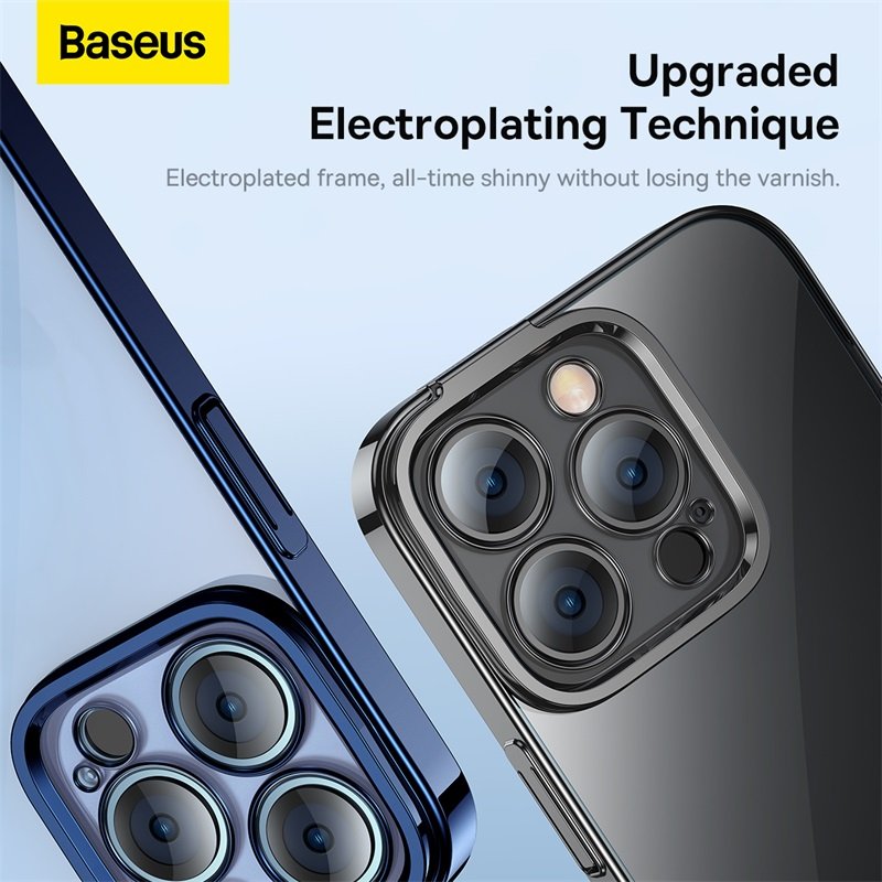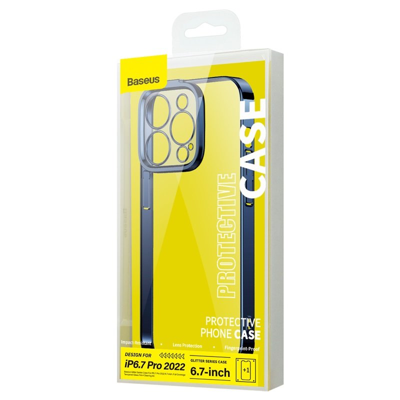 Baseus Glitter Series Case for iP 14 Pro Max (Pack of 1 with full coverage tempered glass screen protector and cleaning kit) – Blue – ARMC021503