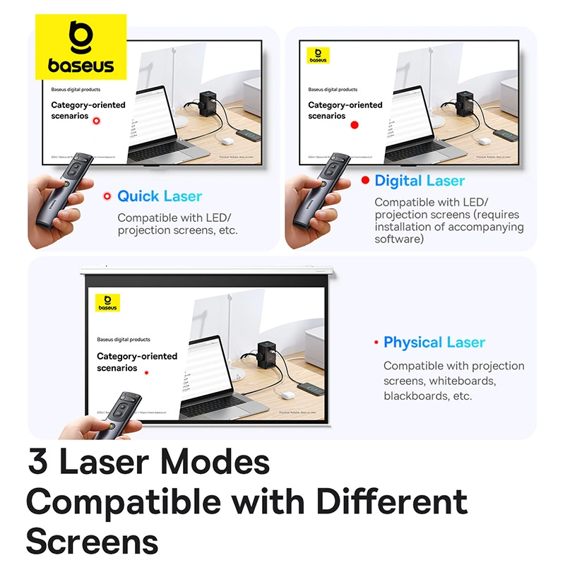The Baseus Orange Dot AI Voice Wireless Presenter is more than a presentation clicker—it’s a multifunctional tool designed for modern professionals. Its blend of voice recognition, dual laser modes, and elegant design enhances productivity and confidence in delivering impactful presentations. Whether for business meetings, lectures, or events, this presenter ensures a seamless and impressive experience.