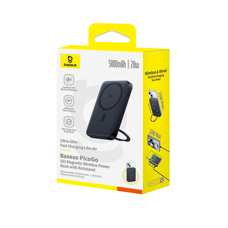 The Baseus PicoGo Qi2 Magnetic Power Bank is perfect for those who need a portable, efficient charging solution. The 5000mAh capacity and fast USB-C charging make it ideal for keeping devices powered throughout the day, while the wireless charging feature provides added convenience for compatible devices. The rotatable stand ensures a hands-free experience, making it a must-have for both personal and professional use.