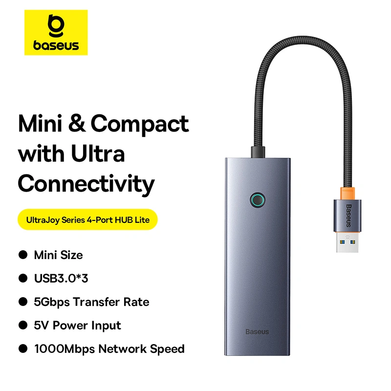 Upgrade your connectivity experience with the Baseus UltraJoy Series 4-Port HUB and enjoy seamless multitasking with speed and efficiency.