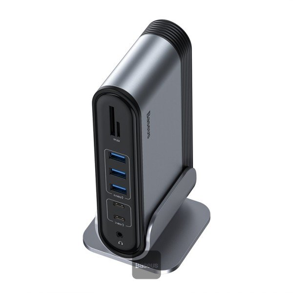 Baseus UnionJoy 14-Port Three-Screen Multifunctional Type-C HUB Adapter(CN+EU+UK)Space grey ( Type-C to 1*HDMI 4K@60Hz/1*HDMI 4K@30Hz / 1*VGA 1080p@60Hz / 1*USB-A 3.0 (5Gbps)/ 4*USB 2.0 480Mbps / 1*Type-C PD 100W /1*RJ45 1000mbps /1*3.5mm Audio – B00532303812-00