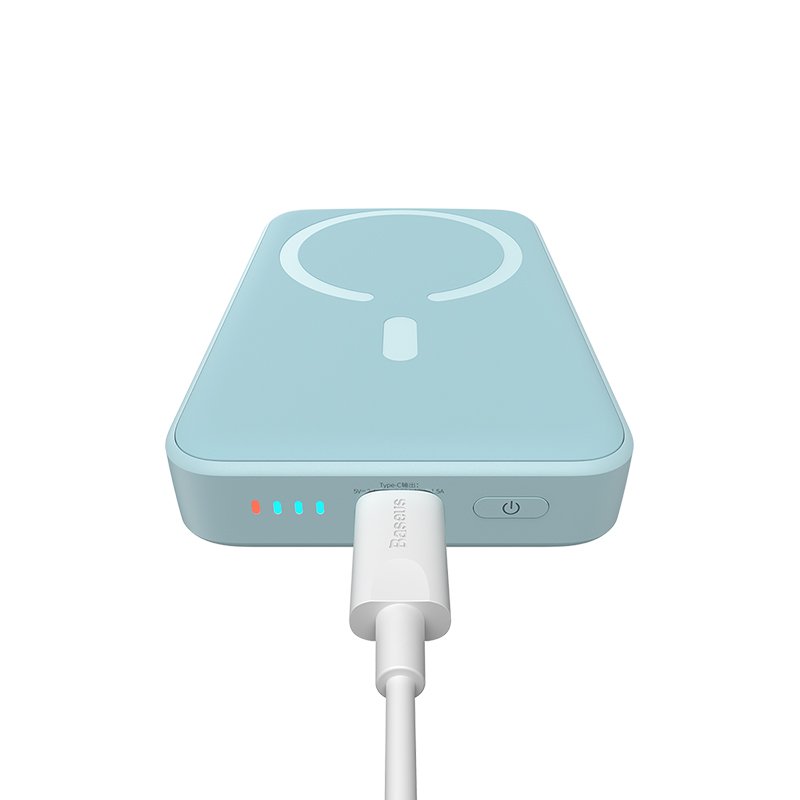 Baseus Magnetic Mini Wireless Fast Charge Power Bank 10000mAh 20W Blue (With Baseus Xiaobai series fast charging Cable Type-C to Type-C 60W(20V/3A) 50cm black) – PPCX030003 / PPCX110103