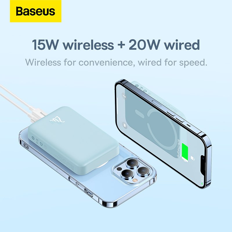 The Baseus Magnetic Mini Wireless Fast Charge Power Bank combines high-capacity charging with a compact, travel-friendly design. With a 10000mAh battery, it ensures your devices remain charged throughout the day. The 20W USB-C PD output delivers rapid wired charging, while the 15W wireless charging capability offers convenient cable-free power for MagSafe-compatible iPhones.