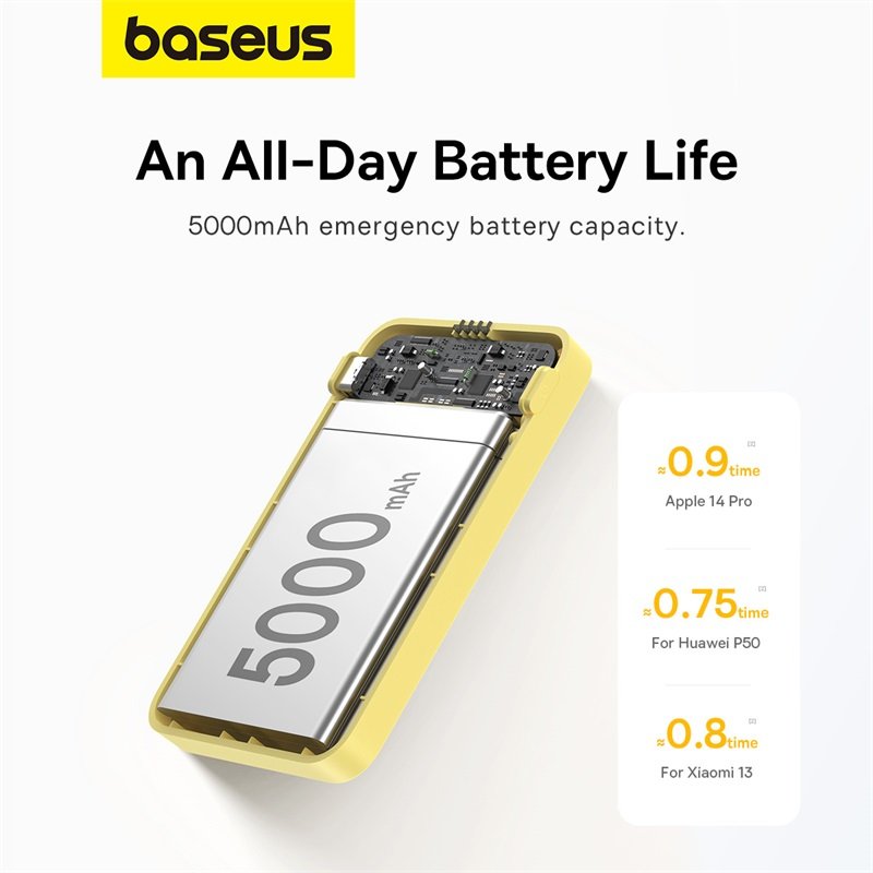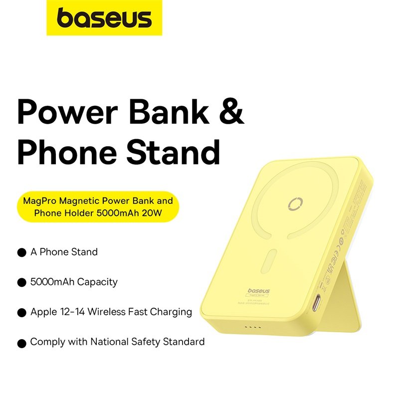 Baseus MagPro Magnetic Bracket Wireless Fast-Charging Power Bank 5000mAh 20W Lemon Yellow (with Simply Series Charging Cable Type-C to Type-C (20V/3A) 30cm White) – P10064101Y23-00