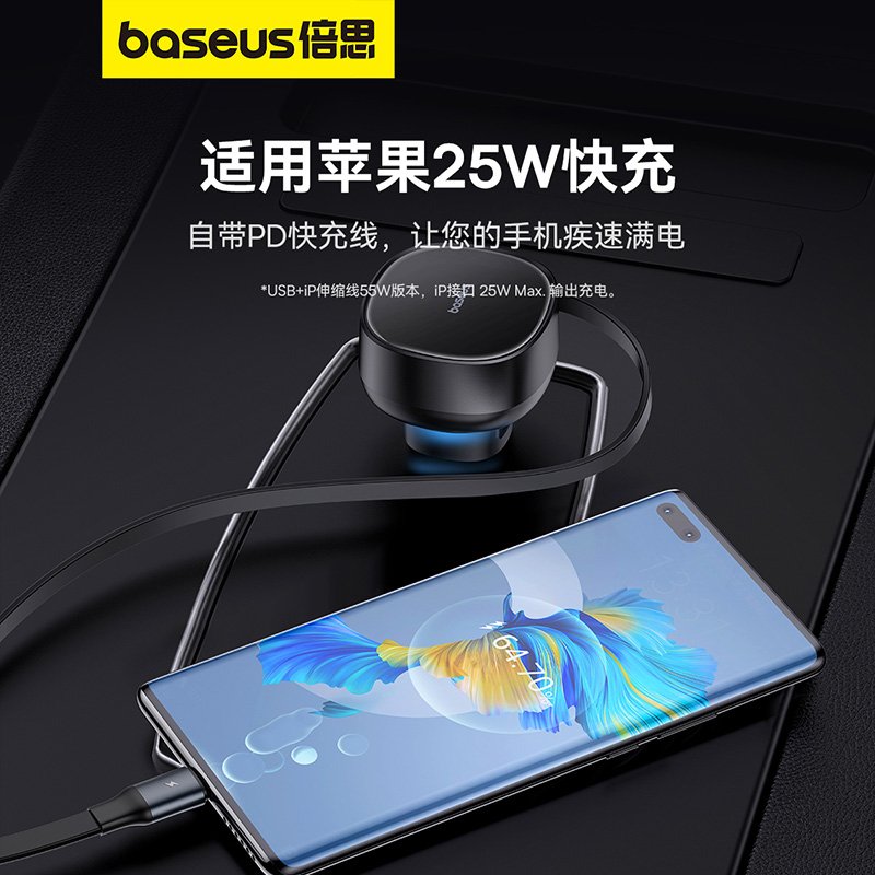 Baseus 60W Enjoyment Pro Car Charger C+Retractable Type-C Cable – Cluster Black – 1 Year Warranty