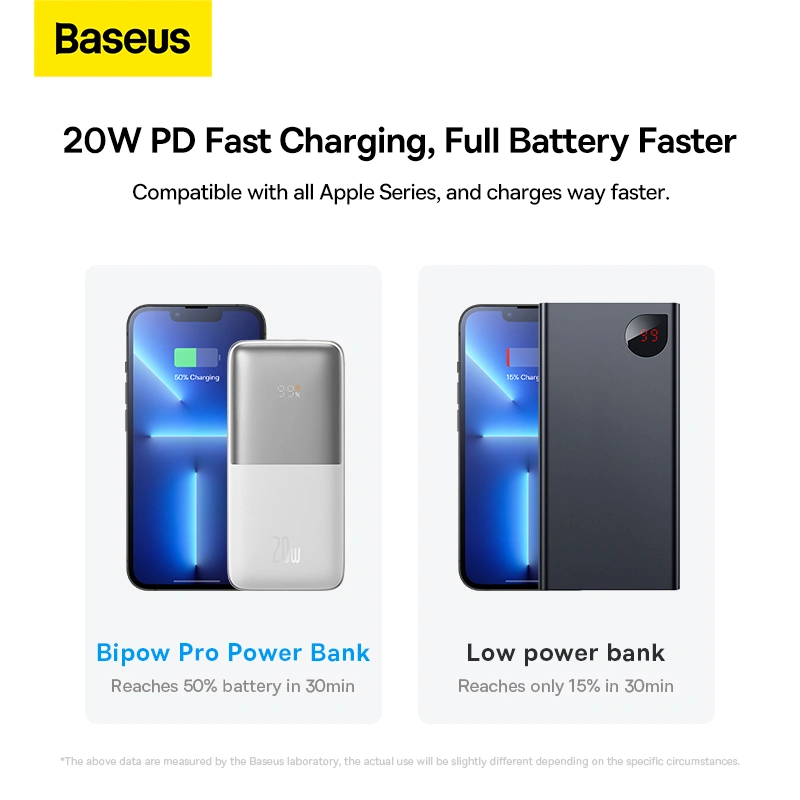 Equipped with a 20W PD output via Type-C and USB ports, the Bipow Pro delivers rapid power to smartphones, tablets, and more—charging your iPhone up to 50% in around 30 minutes.