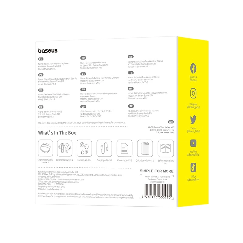 Experience exceptional audio performance and effortless portability with the Baseus Bowie E20 True Wireless Earphones. Designed with cutting-edge Bluetooth 5.3 technology, a comfortable fit, and extended battery life, these earphones are the perfect choice for music lovers, commuters, and active lifestyles.