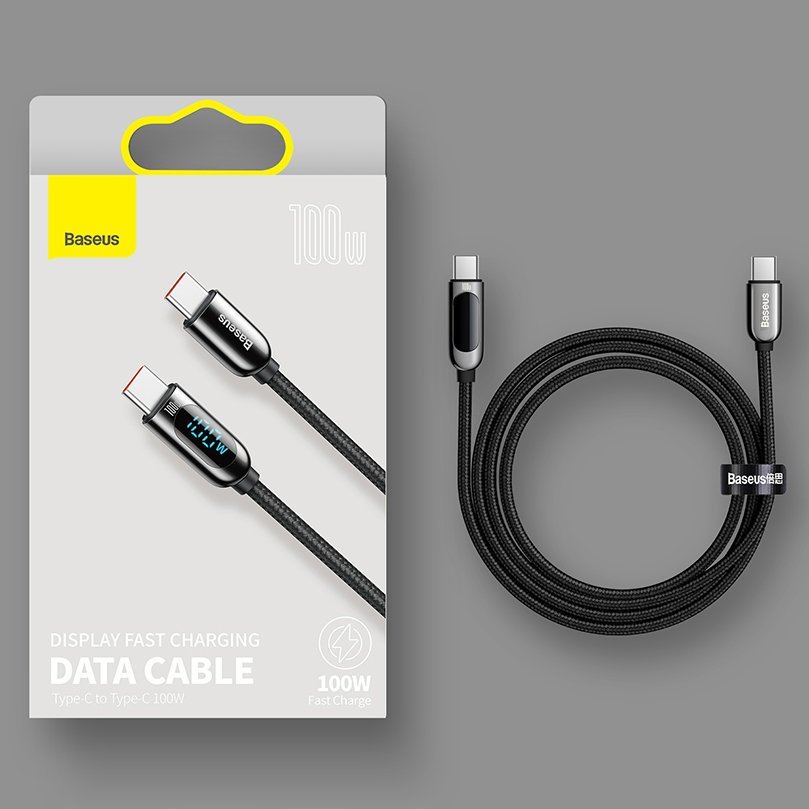 Baseus Display 1M 100W Fast Charging Data Cable Type-C to Type-C Black Digital Display- CATSK-B01