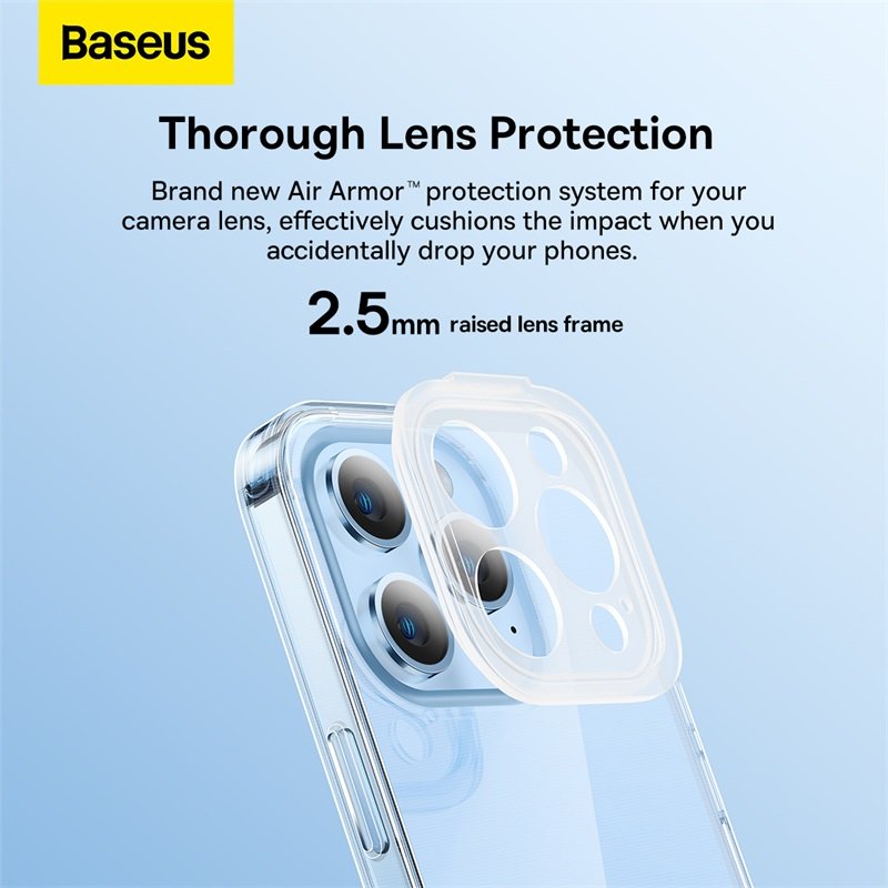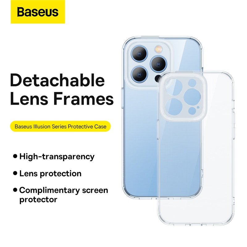 Baseus Illusion Series iP 14 Pro Protective Case for (With clear/Black/Blue/Purple Camera Lens Frames and Full Coverage Tempered Glass Screen Protector and Cleaning kit)-ARHJ000102