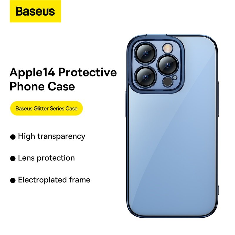 Baseus Glitter Series Case for iP 14 Pro Max (Pack of 1 with full coverage tempered glass screen protector and cleaning kit) – Blue – ARMC021503