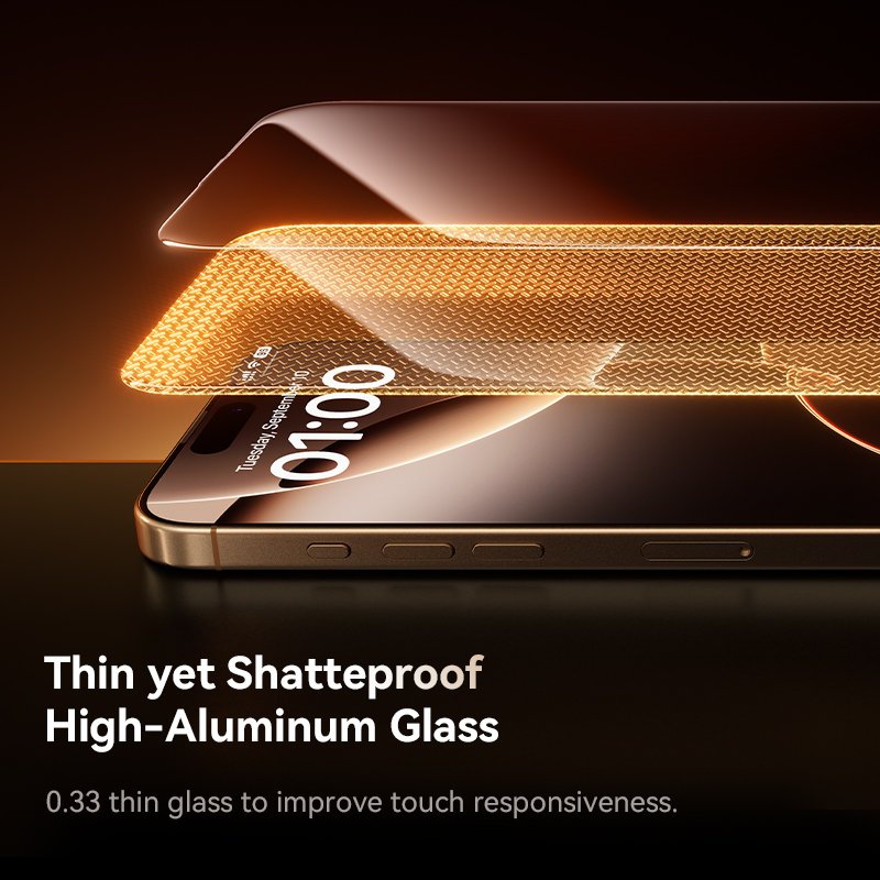 The Baseus Crystal Full-Coverage HD Etched Tempered Glass Screen Protector (Model: P6001206N201-00) is designed specifically for the iPhone 16 Pro, offering comprehensive protection and clarity.