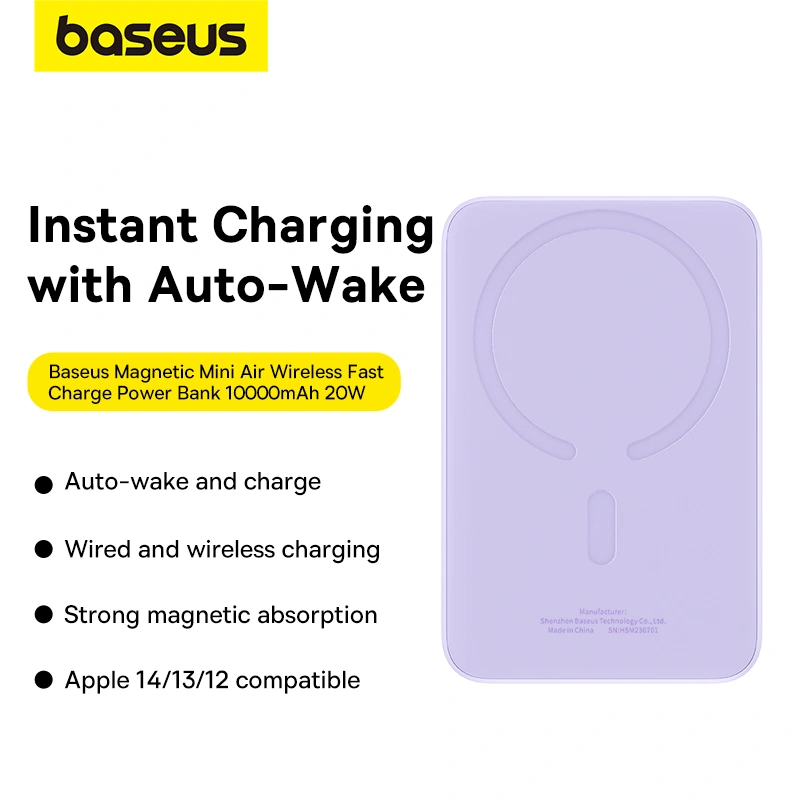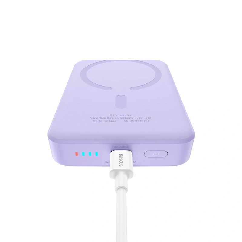 Baseus Magnetic Mini Air Wireless Fast Charge Power Bank 10000mAh 20W (With Simple Charging Cable Type-C to Type-C (20V/3A) 30cm White) – Nebula Purple – P10059001513-00