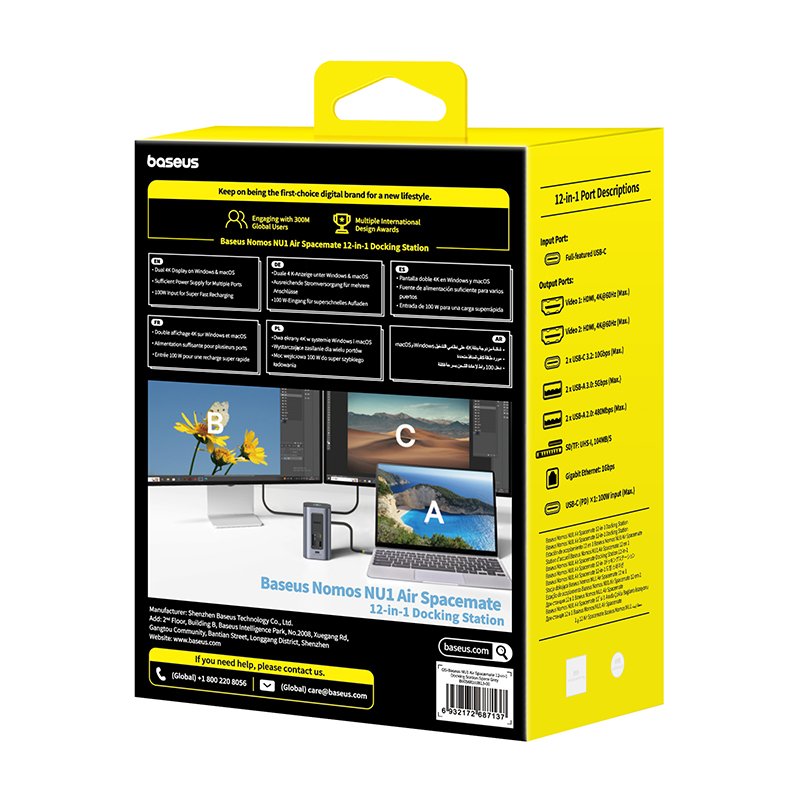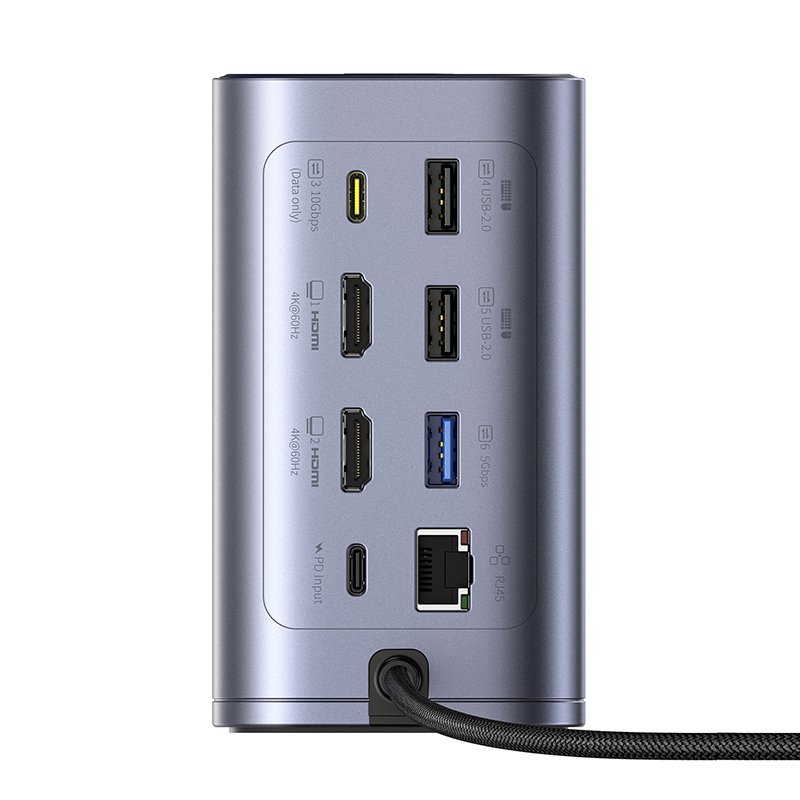 Baseus NU1 Air Spacemate 12-in-1 Docking Station Space Grey (USB-C to 2*HDMI 4K@60Hz+2*USB-C (10Gbps)+2*USB-A (5Gbps)+2*USB-A (480Mbps)+1*RJ45+SD/TF 3.0+1*USB-C (PD) – B00568103813-00
