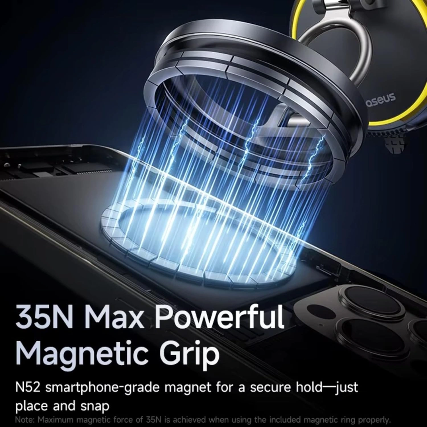 The Baseus PrimeTrip VC2 Flex Magnetic Car Mount is a premium, ultra-secure mounting solution designed for smartphones and tablets. Powered by N52 strong magnets and a Clean-Lock vacuum suction base, it delivers exceptional stability—even on rough roads. With a 360° swivel base and 3-axis flexible adjustment, it allows effortless positioning for the perfect viewing angle while driving.