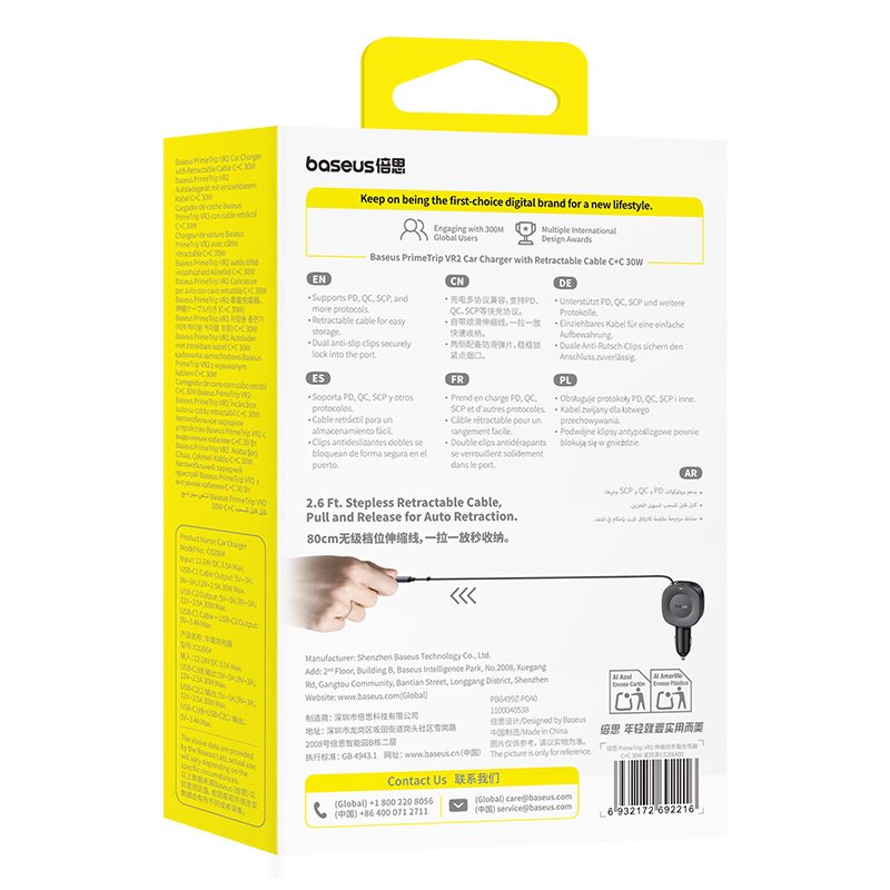 Baseus PrimeTrip VR2 Car Charger with Retractable Cable C+C 30W Cmic Black – C0206400