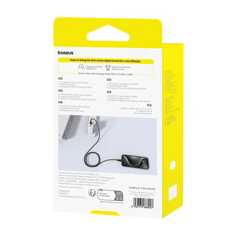 - 1 x Baseus Silky Series Type-C to Type-C Fast Charging Cable (2m)