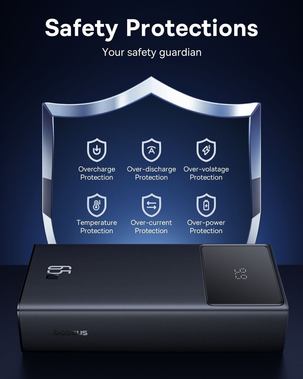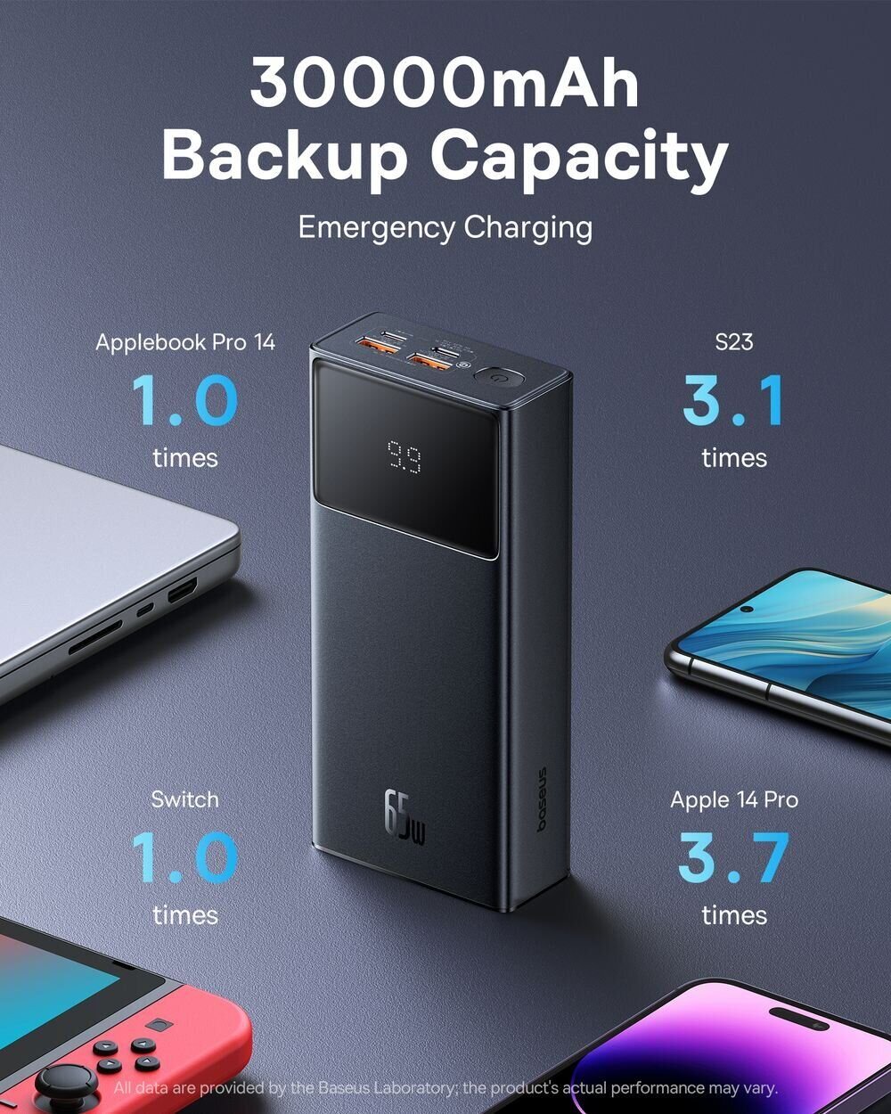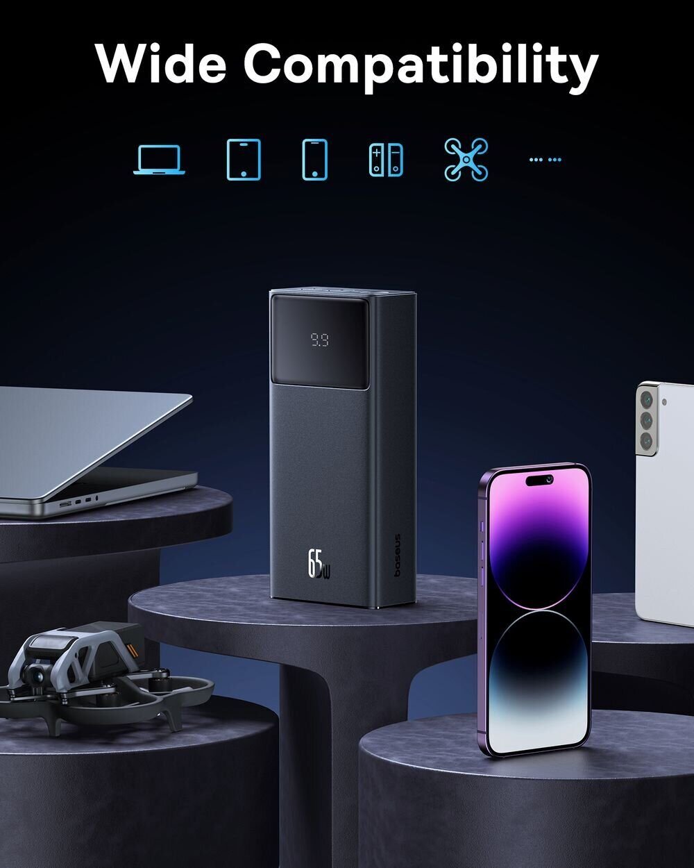 The Baseus Star-Lord Digital Display 65W 30000mAh external battery has an impressive capacity that allows you to charge many portable devices several times. Its capacity of 30,000 mAh is enough to fully charge smartphones, tablets and even headphones multiple times, which makes it an ideal companion for long trips or in conditions where there is no access to electrical networks. This is especially important for those who are constantly on the move and need a reliable power source.