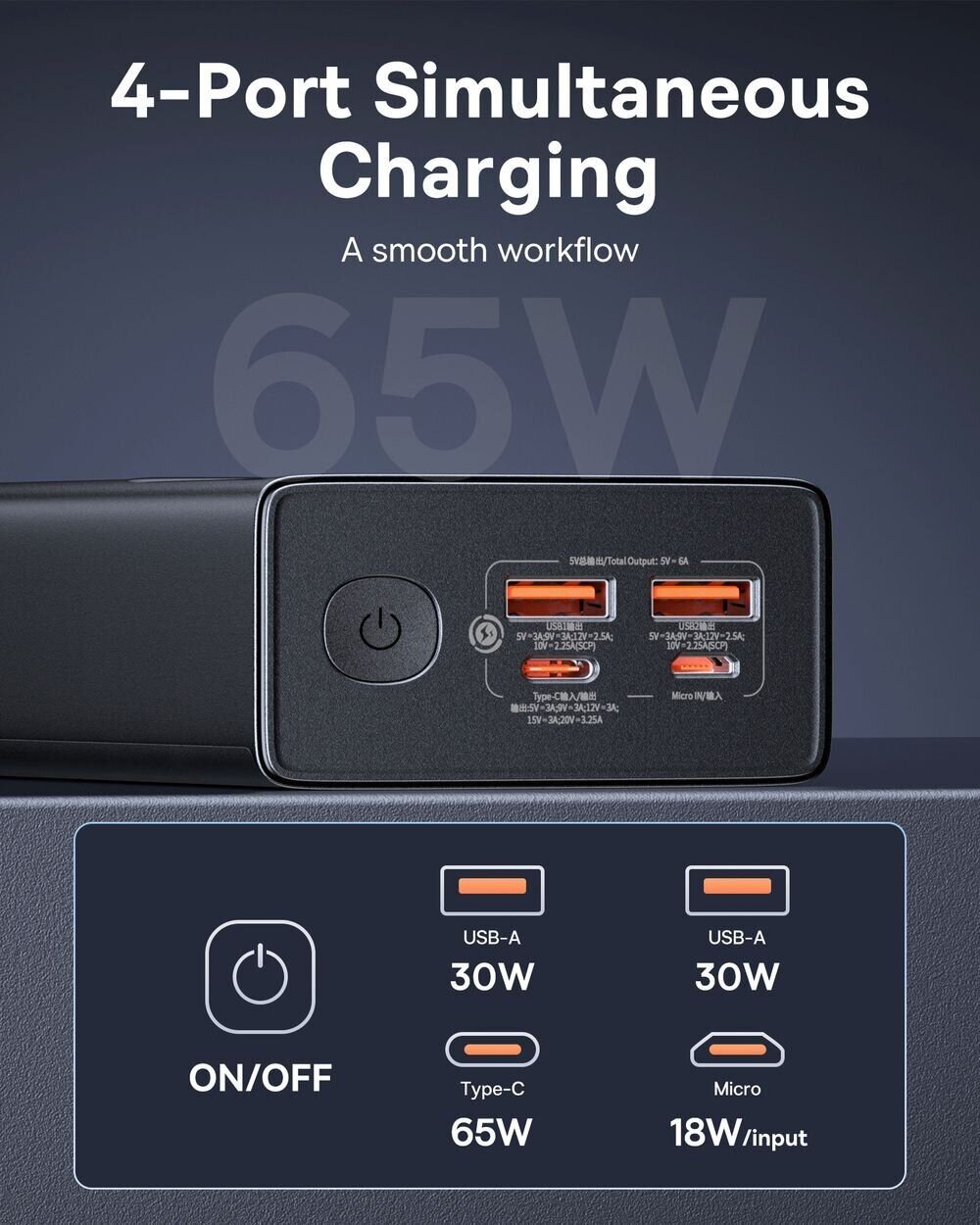 - Fast Charging: Equipped with a robust 65W output, it supports quick charging for various devices, including smartphones, tablets, and laptops, ensuring you stay connected and powered up.