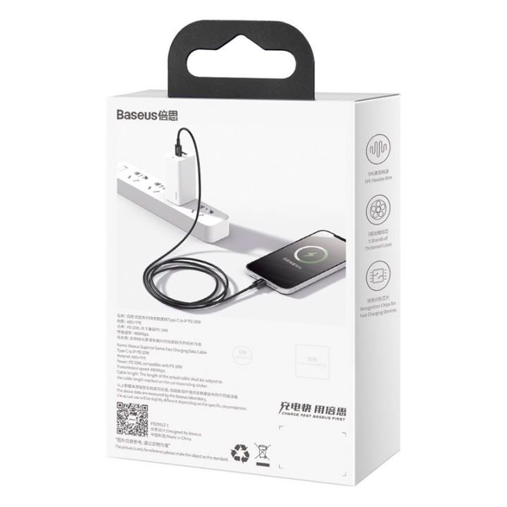 Baseus Superior Series 1M Fast Charging Data Cable Type-C to Lightning PD 20W Black – CATLYS-A01 – 1 Year Warranty