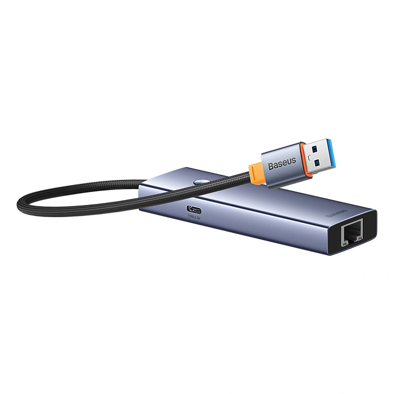 Baseus UltraJoy Series 4-Port HUB – Space Grey (USB-A to USB 3.0*3+RJ45*1+USB-C 5V) – B0005280B811-12